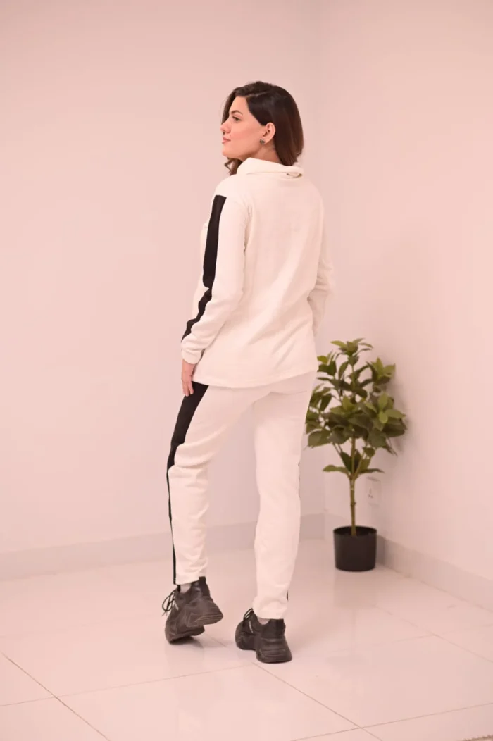 Zipper twin color winter fleece fabric track suit – Beige and Black